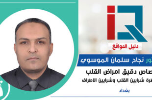 اختصاص دقيق امراض القلب وقسطرة شرايين القلب وشرايين الاطراف والامراض الباطنية والصدرية وعلاج داء السكري عضو جمعية اطباء القلب والصدر العراقية ICTS عضو جمعية اطباء القلب الاوربية FESC عضو جمعية اطباء القلب الامريكية FAHA المدينة : بغداد القسم : اطباء باطنية – اطباء قلبية – اطباء الغدد والسكري – اطباء صدرية والتنفسية موبايل : 07822215755 العنوان : بغداد – ساحة …