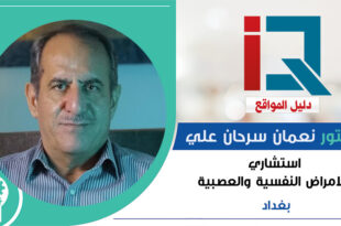 الدكتور نعمان سرحان علي استشاري بالامراض النفسية والعصبية (لندن و دبلن) زميل وعضو كلية الأطباء النفسانيين الملكية البريطانية علاج الأمراض النفسية والعصبية للبالغين بمختلف أنواعها. جلسات العلاج النفسي والعلاج المعرفي السلوكي. العلاج بجلسات الكيتامين Ketamine Therapy وهو علاج حديث لحالات الكابة الشديدة او المعندة وداء الوسواس القهري المزمن واضطراب ما بعد الصدمة. يوجد جهاز تخطيط الدماغ الكهربائي في العيادة. اجراء …